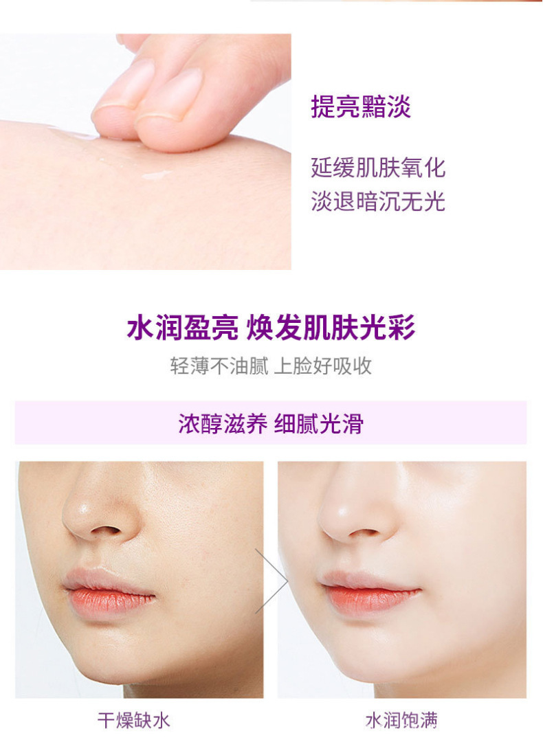 • 功效:美白 补水 保湿 抗衰 修护 深层清洁 提亮肤色 提拉 紧致 锁水 去黑头 抗敏 舒缓 控油 滋养 淡斑 收缩毛孔 隔离 防晒 嫩肤